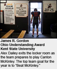 The James R. Gordon Ohio Understanding Award was awarded to Gary Harwood, David Foster, Caitlin Bourque, Matt Hafley, Jenna Watson, Adrianne Bastas, Coty Giannelli, Jessica White and Chelsie Corso from Kent State University, for their entry "Tiger Legacy," which told the story of the legacy of the Massillon Tiger football team.