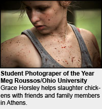 Meg Roussos from Ohio University won the Student Photographer of the Year award with Hannah Potes from Kent State University placing second.